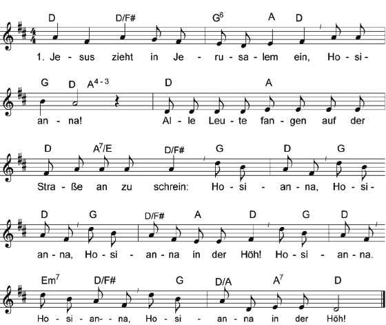 Wiederholung des Liedes Jesus zieht in Jerusalem ein, 1. und 5. Strophe